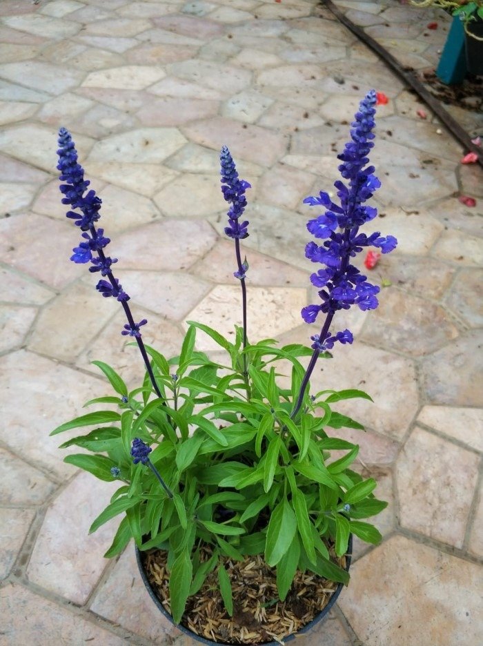 Salvia Biru adalah pilihan sempurna untuk pemandangan yang menawan dan tahan lama. Tumbuhan ini memiliki batang tegak yang dihiasi dengan kelopak bunga kecil yang padat, menciptakan tampilan yang indah dan memikat bagi mata. Ketinggian yang moderat membuatnya cocok untuk penanaman di berbagai area taman.