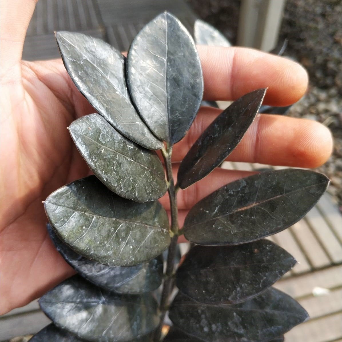 Zamia Black Raven Original hadir dengan daun mengkilap berwarna hitam gelap yang unik dan eksotis. Tanaman ini cocok sebagai hiasan indoor karena tahan terhadap cahaya rendah dan minim perawatan. Ideal untuk dekorasi rumah, kantor, atau ruang komersial modern. Daunnya yang mewah menciptakan kesan elegan dan misterius. Dapatkan Zamia Black Raven asli untuk mempercantik ruangan Anda dengan nuansa tropis minimalis!